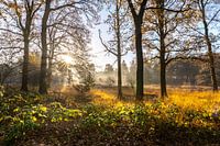 In de vroege ochtend met de mist en zon ziet het er prachtig uit in het bos. Oisterwijkse bossen en vennen.