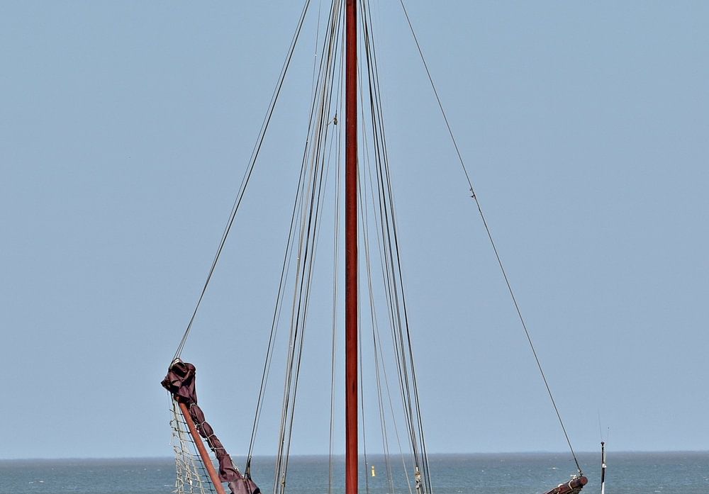 Het bruine vloot schip Balder,verlaat de haven van Harlingen,voor een tocht over de Waddenzee.