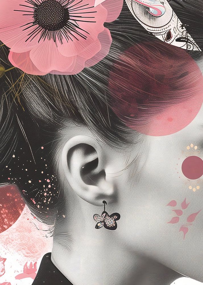 Een poster gemaakt als collage gericht op het gezicht van een vrouw.