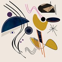 Minimalistisch werk met geometrische vormen, stippen en lijnen.