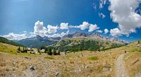 Het dal van de La Clarée, zicht op de Refuge du Ricou met de bergen Crète de la Casse Blanche op de achtergrond, Névache, Hautes Alpes, Frankrijk