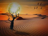 Surrealistische creatie van de maan op een dode boom