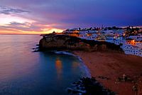 Het dorpje Carvoeiro aan de zuidkust in de Algarve Portugal bij zonsondergang