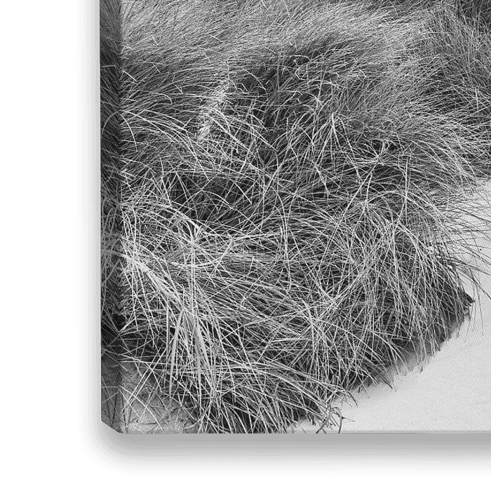 Een beeld van de Nederlandse kustlijn in zwart wit met het duin het strand en de Noordzee. Tevens een mooi wolkenlucht boven de Noordzee.
