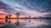 Een prachtige zonsopkomst langs de oevers van de Maas. Deze prachtige rivier vormt de grens tussen Noord-Limburg en Noord-Brabant. Aan de Limburgse kant ligt iets ten noorden van de plaats Gennep, het natuurgebied Genneperhuis. Een plek waar ik graag kom op een vroege, koude ochtend. Het Genneperhuis was een burcht en versterkte vesting aan de monding van de Niers in de Maas nabij het stadje Gennep in de buurt van Milsbeek. Tot 2009 was er zelfs nauwelijks nog sprake van een ruïne, slechts de kroonwerken en verhogingen in het landschap geven nog een impressie van de omvang. Het gebied heeft de status van beschermd monument. n 2009 werd een aanvang gemaakt met een gedeeltelijke reconstructie rondom de kasteelruïne en worden kroonwerken en grachten weer zichtbaar gemaakt. Tevens werden ter hoogte van de Bloemenstraat proefsleuven gegraven om inzicht te verschaffen naar archeologische bijzonderheden. De werkzaamheden werden in 2010 afgerond en het gebied is nu toegankelijk als toeristische bezienswaardigheid. Er werden vijf loopbruggen op de funderingen gelegd en tevens werd er een brug over de Niers geplaatst.