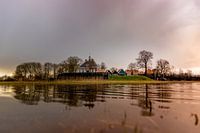 Het voormalige eiland Schokland was na een paar dagen regen weer even een echt eiland.
