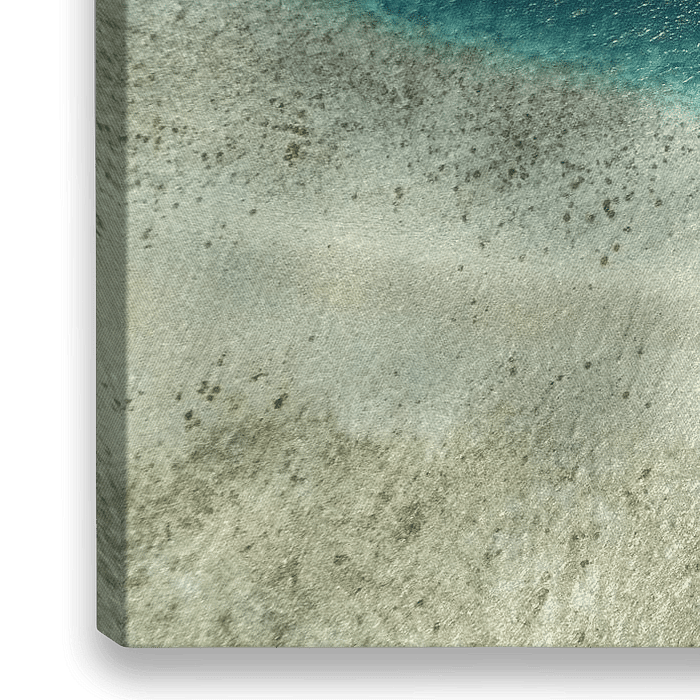 Zandbank op Malediven waarbij koraalrif overgaat in de diepte van de oceaan. Een ongelofelijk contrast en diepteverschil. Vanuit de lucht gefotografeerd met drone.