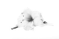 Het einde van een amaryllisbloem in zwart-wit.