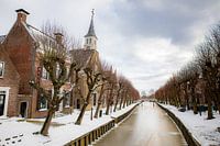 Het elfsteden stadje Slooten aan een bevroren gracht in Friesland. Eén van de mooiste stadjes van Friesland gelegen aan een pitoreske gracht, vlakbij het Slotermeer.
