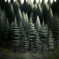 "The Whisper of Pines" toont een rustige bosscène met een groep gestileerde groenblijvende bomen tegen een mistige, etherische achtergrond. Variërende boomhoogten creëren natuurlijke diepte, terwijl de onscherpe achtergrond een dromerig tintje aan de compositie toevoegt. Met zijn rustgevende kleurtonen en vredige sfeer is dit kunstwerk…