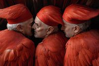 Deze AI-gecreëerde portretten dompelen de kijker onder in een wereld van mysterie, macht en verborgen betekenissen. In het Vaticaan komen kardinalen bijeen, gehuld in rijke rode gewaden, die niet alleen hun status symboliseren, maar ook de onderliggende sfeer van intrige versterken. De intense, diepe tinten rood overheersen het…