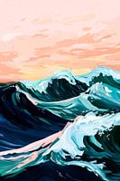 Het zachte samenspel van diepblauwe golven en een zachte, roze zonsondergang wekt een verlangen naar vrijheid en avontuur. De dynamische structuren van de golven brengen leven en energie in elke kamer. Ideaal voor de woonkamer, waar ze een ontspannen sfeer creëren en dromen van de zee wekken.