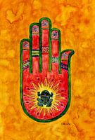 Deze aquarel verbeeldt een spirituele overhandiging van het symbool van een kikker.