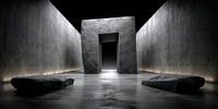 Twee massieve muren bakenen het pad af, parallel, meedogenloos, zonder afwijking. Ze leiden naar een enkel portaal - uitgehouwen uit het materiaal, zwaar, onwrikbaar, definitief.