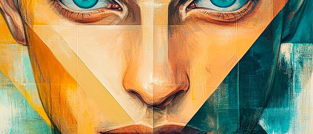 Een fascinerend samenspel van kleuren en geometrische vormen voert de kijker mee naar een wereld vol emoties. De stralende blauwe ogen stralen intensiteit en mysterie uit, terwijl de harmonieuze compositie een moderne sfeer creëert. Perfect voor de woonkamer, waar het een gesprek kan stimuleren en stijlvolle accenten kan plaatsen.