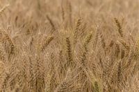 Goudgeel graan, voedsel dat wereldwijd wordt gegeten. Graan is de verzamelnaam voor de zaden van grassen, rijst, tarwe, gerst, rogge, maïs, haver, gierst en spelt. Dit veld met graan lag in het Brabantse land, tussen Hank en Nieuwendijk, vlak bij Nationaal Park De Biesbosch in Nederland.