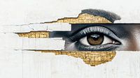 "Het gouden oog - kijken door de tijd" speelt met het idee dat niet alles wat verborgen is voor altijd in het donker blijft. Het nodigt ons uit om achter de façade te kijken, door de scheur heen te kijken en te erkennen dat de waarheid vaak verborgen ligt in het gefragmenteerde. Een schilderij dat vragen oproept en de aandacht trekt - mysterieus, diepzinnig en vol symbolische kracht.