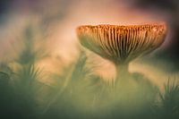 Het herfstgevoel. Dat krijg je van deze foto van een paddestoel staand in het mos.