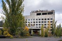 Koop de foto Het hotel van spookstad Pripyat bij Chernobyl van Tim Vlielander op canvas, aluminium dibond, (ingelijste) fotoprint, behang en ArtFrame, op maat geprint in Fine-Art kwaliteit.