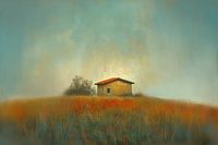 Het huisje op de heuvel. Een lieflijk huisje in warme tinten. Een plek waar iedereen wel zou willen wonen! Een bijzondere blikvanger voor je interieur.