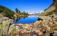 De Dachstein wordt weerspiegeld in het spiegelmeer op de Reiteralm