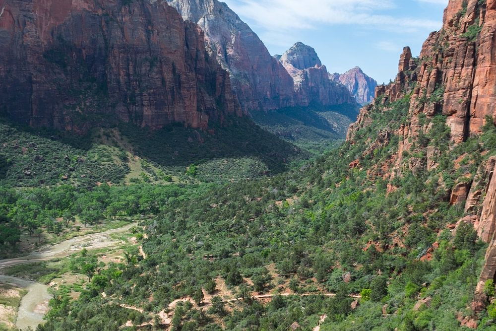 Een indrukwekkend uitzicht op de bergen en rotsen van Zion Nationaal Park in Amerika. Een fantastische plek om te genieten van de mooie natuur. De wolkenlucht maakt deze foto compleet.