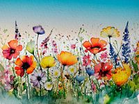 Koop dit bloemen kunstwerk Het is zomer! Schilderij van een berm vol kleurrijke wilde bloemen. van Studio Pieternel op canvas, aluminium dibond, (ingelijste) fotoprint, behang en ArtFrame, op maat geprint in Fine-Art kwaliteit.