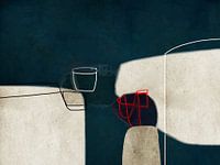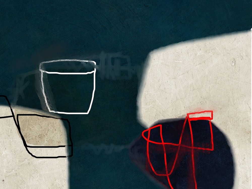 Minimalistisch abstract werk van Roberto Moro met zachte tinten van donkerblauw en beige.