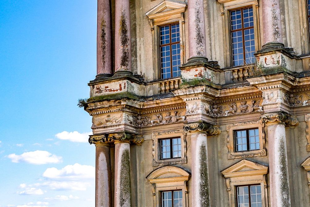 Deze foto toont de majestueuze gevel van het kasteel van Plumlov in Tsjechië, badend in helder zonlicht. Het rijke architecturale detail van dit barokke kasteel komt prachtig naar voren met zijn verweerde pilaren, imposante ramen en sierlijke decoraties. Het contrast tussen de oude grandeur van het kasteel en het weidse landschap met glooiende velden en groene bossen op de achtergrond creëert een tijdloze sfeer. De blauwe lucht en zachte wolken geven de compositie een serene uitstraling en versterken de natuurlijke pracht van deze locatie. Het kasteel van Plumlov, een verborgen juweel in de regio, is niet alleen een symbool van historische pracht, maar ook een inspiratie voor rust en bewondering. Deze foto past perfect in interieurs waar de liefde voor geschiedenis en natuur centraal staat. Benieuwd naar de versie in zwart/wit? Ook deze vind je tussen mijn werken!