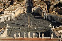 Het klassieke uitzicht: het Sint-Pietersplein in Vaticaanstad, gezien vanaf de koepel van de basiliek. Op de voorgrond staan de apostelen.