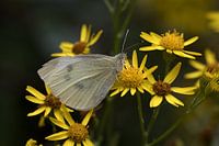 Het klein geaderd witje of Pieris napi op een gele bloem