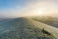 Paesens-Moddergat ontwaakt op een heerlijk frisse winterse zondagochtend. Gezien vanaf de dijk, even buiten het dorp.