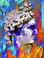 Tijdens een wandeling door Brussel kwam ik een stenen beeld van een vrouw tegen, bedekt met blauwe verf. Ik heb haar vanuit verschillende hoeken gefotografeerd en de foto's later in Photoshop bewerkt met verschillende kleuren. Het is verrassend wat je zomaar kunt tegenkomen tijdens een wandeling.
