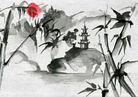 In de stijl van Sumi-e geeft dit schilderij een Japans tintje aan elke kamer.