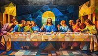Het laatste avondmaal kubisme kleurrijk panorama in een moderne, kubistische panorama-uitvoering. Dit schilderij is een ware blikvanger: een eigentijdse interpretatie van het iconische tafereel, weergegeven in een stijl die barst van expressie, vorm en kleur.