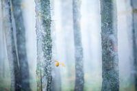 Door gebruik van in-camera meervoudige belichting werd hier een speciaal beeld gecreëerd van een bos met nog het laatste herfstblaadje aan de boom.