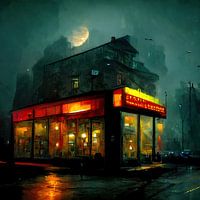 Koop dit schilderij Het laatste café dat open is in het holst van de nacht... deel 2 van Maarten Knops als reproductie geprint op canvas, aluminium dibond, (ingelijste) fotoprint, behang en ArtFrame. Voor jou op maat geprint in Fine-Art kwaliteit.