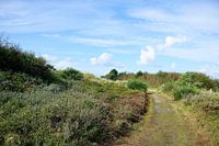 Het lege pad voor ons tijdens een wandeling in de richting van de duinen op Terschelling in Nederland. We vonden het heerlijk om in deze weidse natuur te wandelen zonder iemand in de buurt.