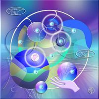 Het leven is te lezen in je hand, zegt men. Dit abstracte werk is een weergave van hoe het leven en de onderlinge verbanden en gebeurtenissen met elkaar samenhangen. Het leven heeft meerdere aspecten die op elkaar inwerken en uitdagingen vormen. De grote cirkel geeft de oneindigheid weer, terwijl de bollen en lijnen de innerlijke…