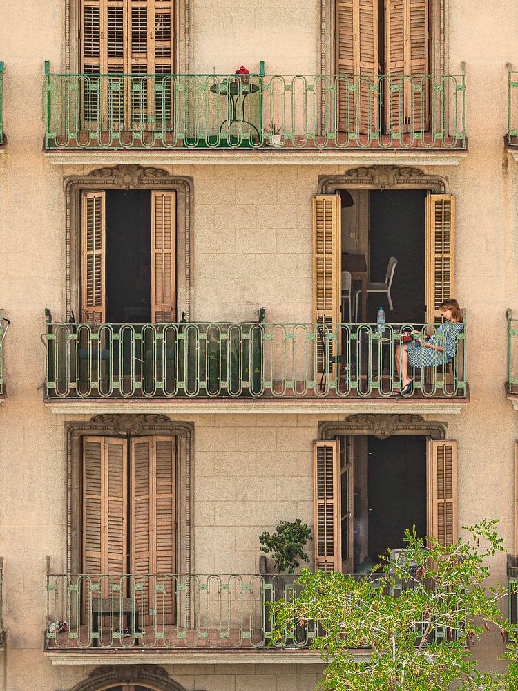 Ik weet niet hoe oud het gebouw is, maar het heeft een mooi patina. Een beetje versleten, maar nog steeds schattig. Wie wil er nou niet op zo'n balkon zitten lezen en af en toe je hoofd draaien om te genieten van het architectonische meesterwerk Sagrada Familia in het hart van Barcelona.