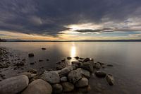 Goudkleurig licht betovert de Ammersee kort voordat de zon ondergaat. De donkere wolken voegen drama toe aan het tafereel en vormen een prachtig contrast met de warme kleurschakering. Door de lange belichtingstijd lijkt het water kalm en zacht, en de stenen op de voorgrond vormen een levendig contrast met deze zachte kalmte. Het licht aan de horizon, een straaltje hoop. Ja, zelfs als er donkere wolken door je leven trekken, is er altijd een sprankje hoop. En je kunt ook iets moois bouwen van stenen die op je pad komen, zoals Johann Wolfgang von Goethe ooit zei.
