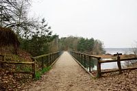 We hebben echt genoten van onze wandeling in het Nationaal Park Maasduinen in de buurt van de stad Bergen in de provincie Limburg, Nederland. Hier steken we het meer over omdat er veel water is.