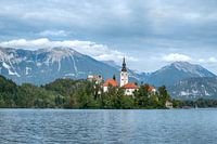 De Maria Hemelvaartkerk op het eilandje midden in het meer van Bled.