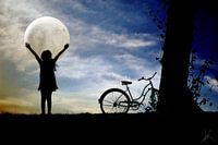 Koop dit digital art kunstwerk Het meisje en de maan - H. Fischer van mimone art als reproductie op canvas, aluminium dibond, (ingelijste) fotoprint, behang en ArtFrame, op maat geprint in Fine-Art kwaliteit.