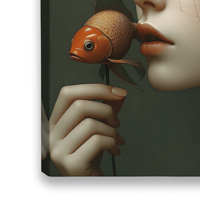 Ontdek dit intrigerende surrealistisch schilderij van een vrouw met vis – een krachtig surrealistisch portret dat modern, symbolisch en emotioneel geladen is. Dit kunstwerk combineert realisme met droombeelden en brengt het onderbewuste tot leven. De vis staat symbool voor intuïtie, gevoel en verborgen werelden, terwijl de jonge vrouw een serene, mysterieuze uitstraling heeft die uitnodigt tot reflectie. Dit droombeeld portret is perfect voor liefhebbers van moderne kunst en symbolische kunst die hun interieur willen verrijken met een uniek, betekenisvol werk. Een echte blikvanger voor je woonkamer, werkruimte of galerie. Voeg nu deze onderbewust geladen kunst toe aan je collectie. Zoek je kunst online kopen die zowel visueel als inhoudelijk raakt? Dan is dit jouw werk.
