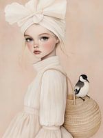 Het meisje en de vogel, super leuk en schattig portret in pastelkleuren. Een bijzondere en niet alledaagse blikvanger voor je interieur!