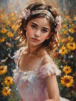 Een impressionistische schilderij: een ballerina meisje te midden van bloemen. Prachtig licht, levendige kleuren. Breng de natuurlijke schoonheid in huis en geniet dagelijks van de vreugde van dit kleurrijke kunstwerk.