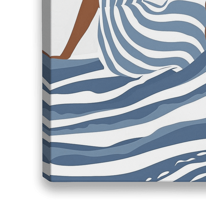 Een geïllustreerde poster van een gebruind meisje in een blauw gestreepte jurk en een zonnehoed.