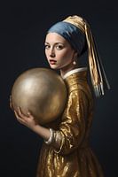 Deze moderne versie van het meisje met de parel van Johannes Vermeer zet aan tot nadenken. Is meer en groter altijd beter? Of kunnen we beter bij het origineel blijven?
