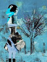Een moderne digitale collage gecombineerd met abstract acrylschilderij. Geen AI kunstwerk.